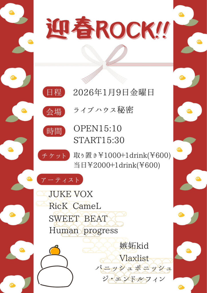 料金:adv¥2,500 door¥3,000(+1drink)